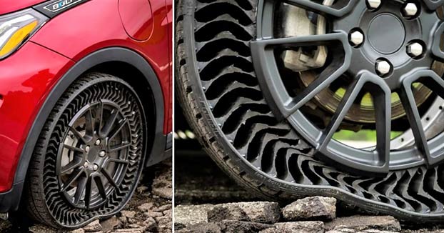 Les fabricants de pneus développent des technologies de pneu sans air capables de supprimer totalement les crevaisons. Contrairement aux pneus classiques remplis d’air, ces structures utilisent des matériaux flexibles capables de supporter le poids du véhicule tout en conservant leur forme.
